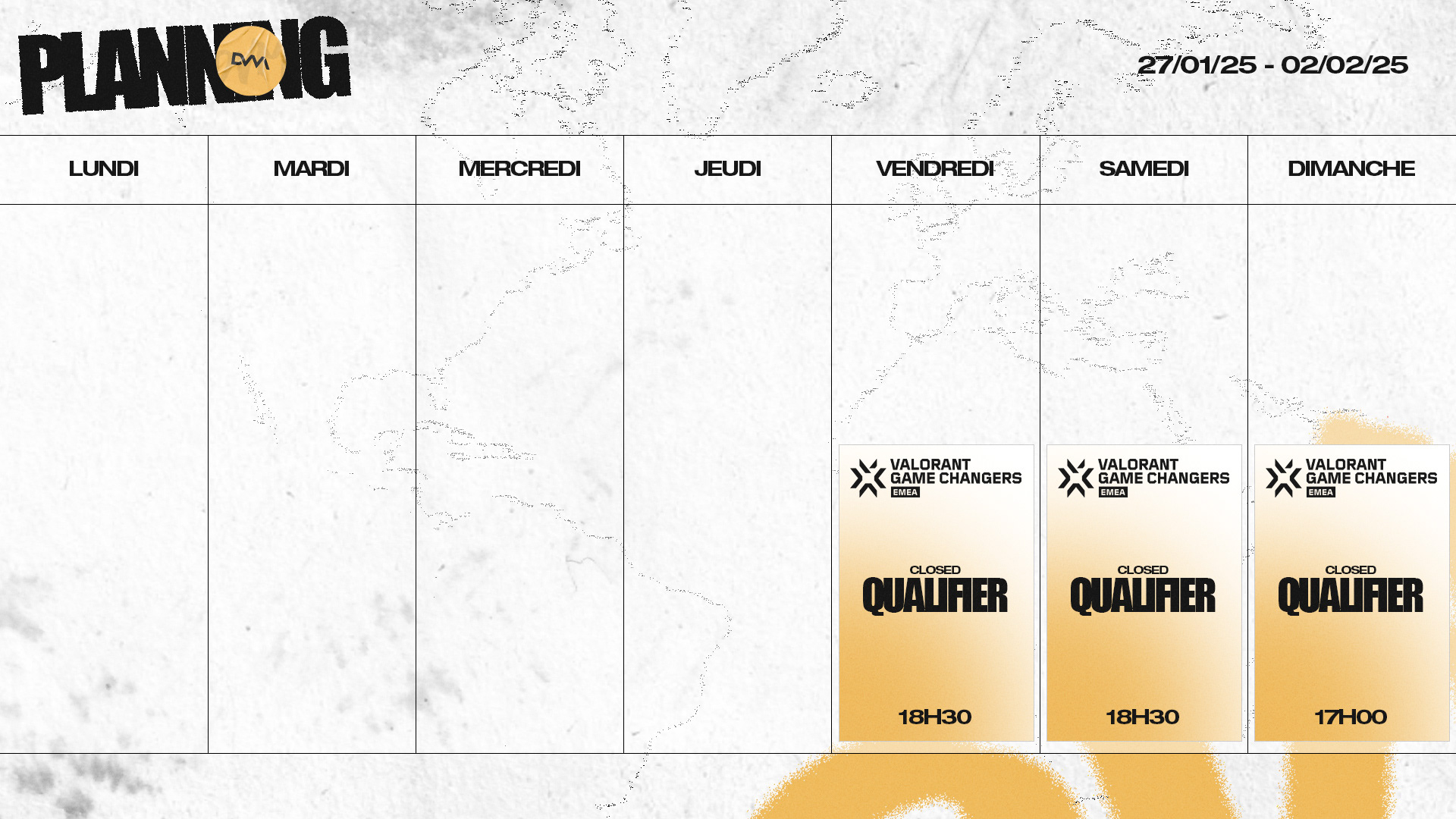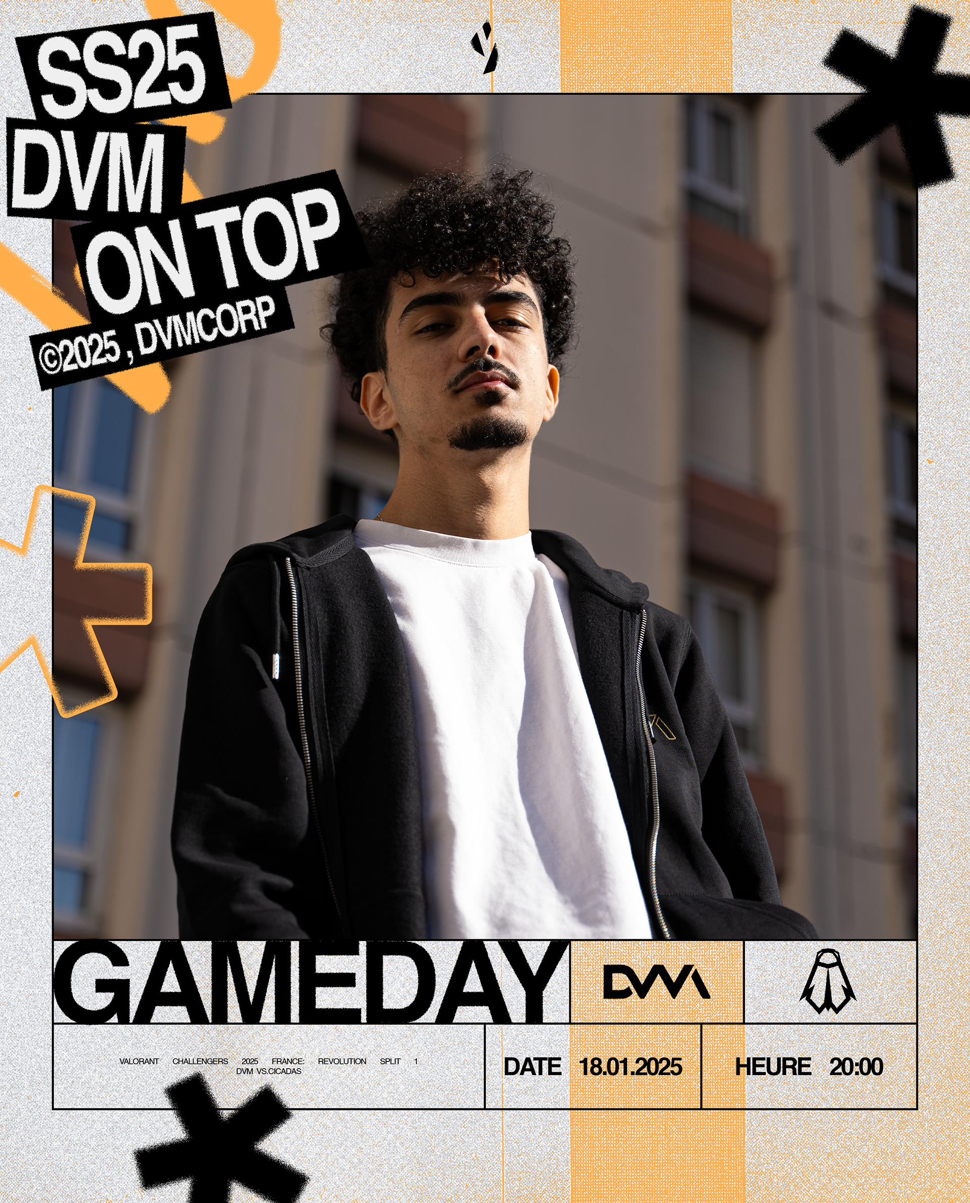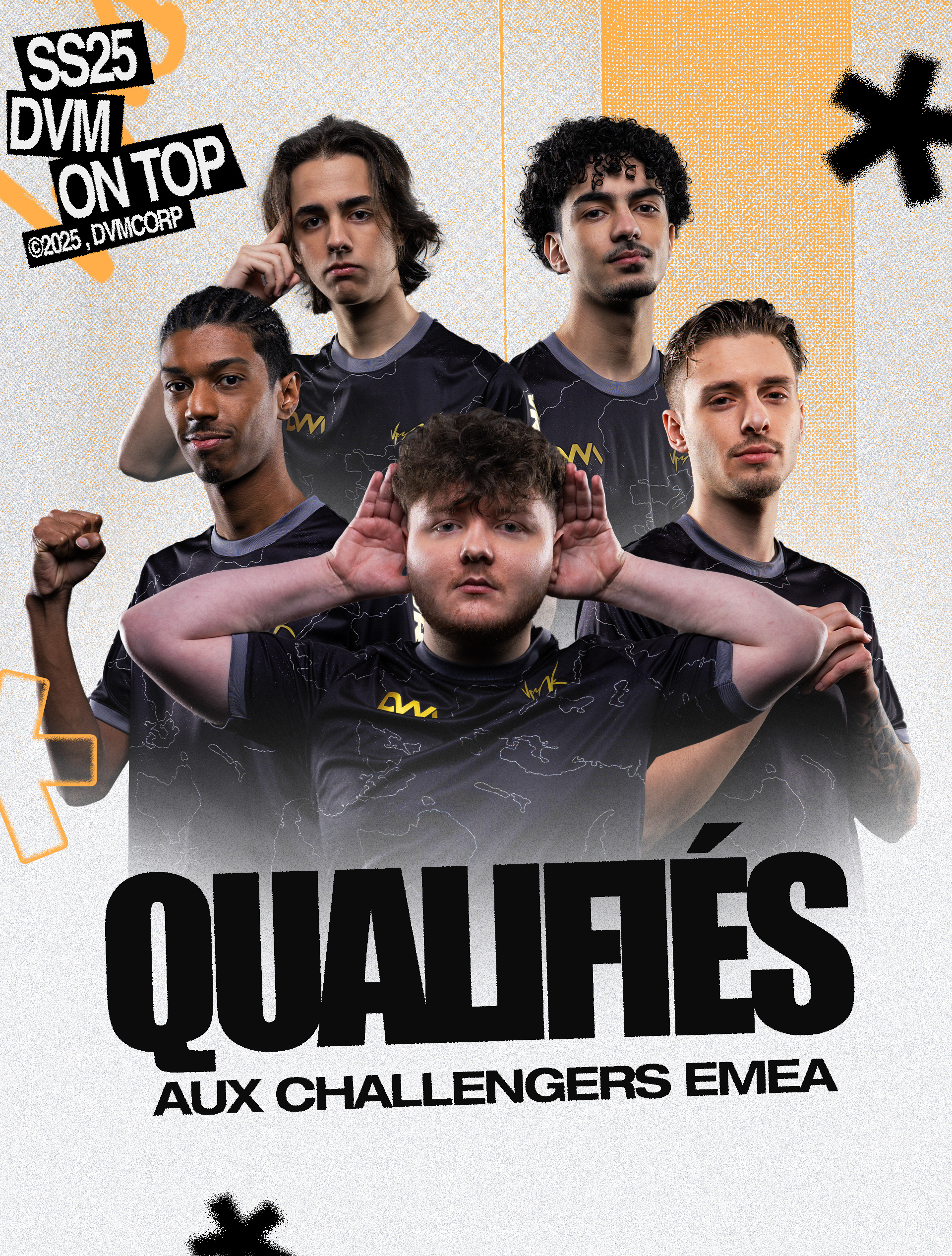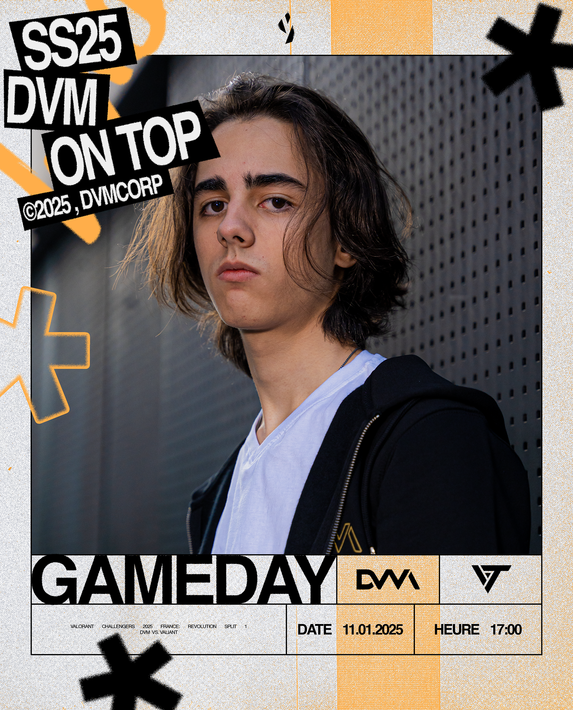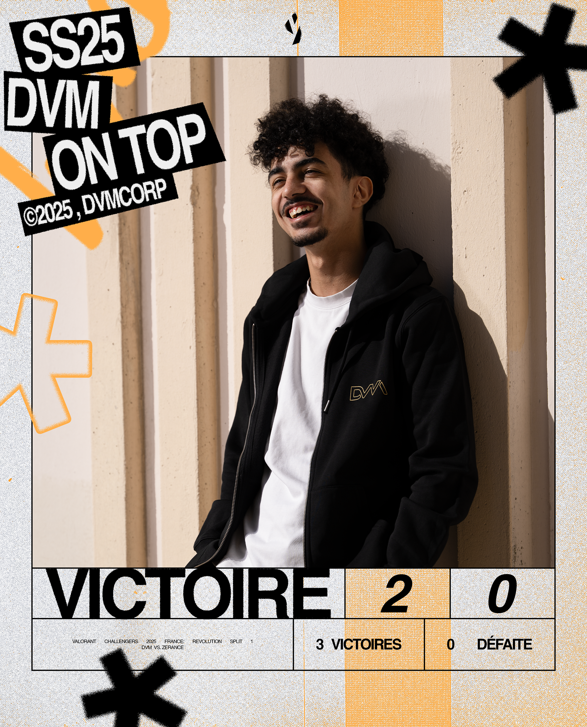 Nous avons créé un univers graphique impactant qui reflète parfaitement l'univers de DVM Esport, qui inclut : identité graphique sur les réseaux sociaux, affiches de match, de victoire, de défaite et plein d'autres éléments retrouvables sur les différents contenus de DVM.